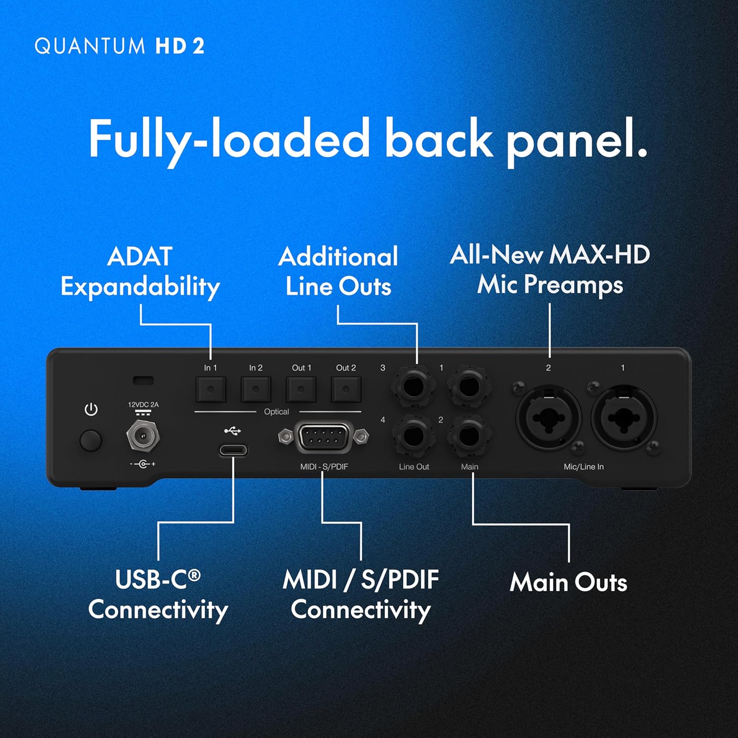 The Fender Quantum HD 2 is a next-generation 20 x 24 USB-C audio interface built for musicians, producers, and project studios who demand uncompromising sound quality and a workflow that moves at the speed of inspiration. Powered by MAX-HD mic preamps with +75 dB of clean gain and 32-bit/192 kHz converters, the HD 2 captures every nuance of your performances with breathtaking detail. Front-facing Fender instrument inputs make guitars and basses feel right at home, delivering studio-grade tone with zero guesswork. Setup becomes even easier with Auto Gain, which automatically sets perfect input levels so you can start recording immediately. For creative exploration, dual re-amp outputs let you send recorded tracks back through amps and pedals without needing additional boxes or routing tricks. The HD 2 is built for modern creators. The DSP monitor mixer provides flexible, latency-free cue mixes, while loopback routing makes livestreaming, podcasting, and content creation effortless. With 16 channels of ADAT expansion plus S/PDIF I/O, the HD 2 grows with your studio — from multi-mic drum sessions to full-band recording. Control preamps, phantom power, monitoring, and routing remotely through Fender Studio Pro or Fender Universal Control, whether you’re at your desk or across the room. A perpetual license for Fender Studio Pro is included, giving you a complete production suite with authentic Fender amps, effects, and a powerful drag-and-drop workflow. Compact, versatile, and engineered for premium sound, the Fender Quantum HD 2 is the perfect centerpiece for professional project studios, mobile rigs, and musicians ready to elevate every recording.