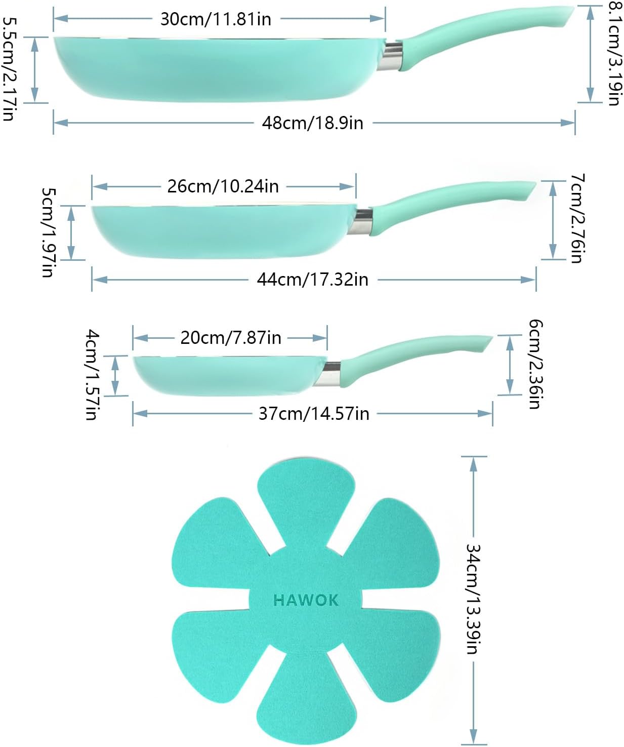 Elevate your cooking experience with this elegant and functional aluminum cookware set. Create the dishes you love without the frustrations. You'll cook, boil, stir fry, fry, and sauté with minimal effort and minimal oil. HAWOK kitchen cookware sets feature long-lasting ceramic nonstick coating, makes cooking an enjoyable thing and cleaning a breeze. The ergonomic bakelite handle can keep you away from high temperature burns while giving you a comfortable touch. Each piece of HAWOK cookware set is 100% free of PFAS and any other harmful chemicals, ensuring your kitchen and home stays healthy and toxin free. Induction bottom cooks food evenly, compatible with gas or electric, ceramic stove top. Enjoy healthy and happy life with our kitchenware set!