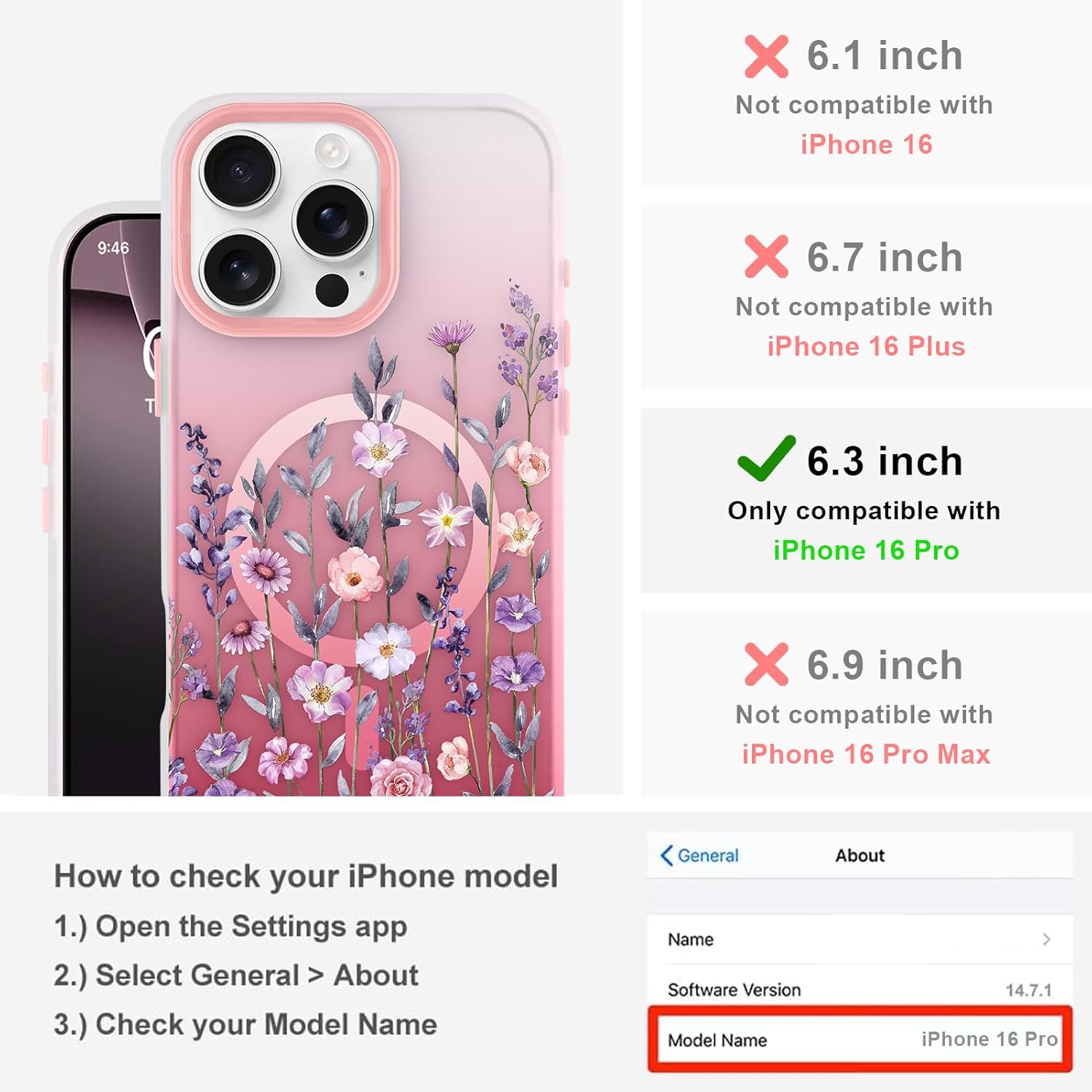 | Compatible Phone Models | iPhone 16 Pro, iPhone 16 Pro Case Flower, iPhone 16 Pro Case Pink |